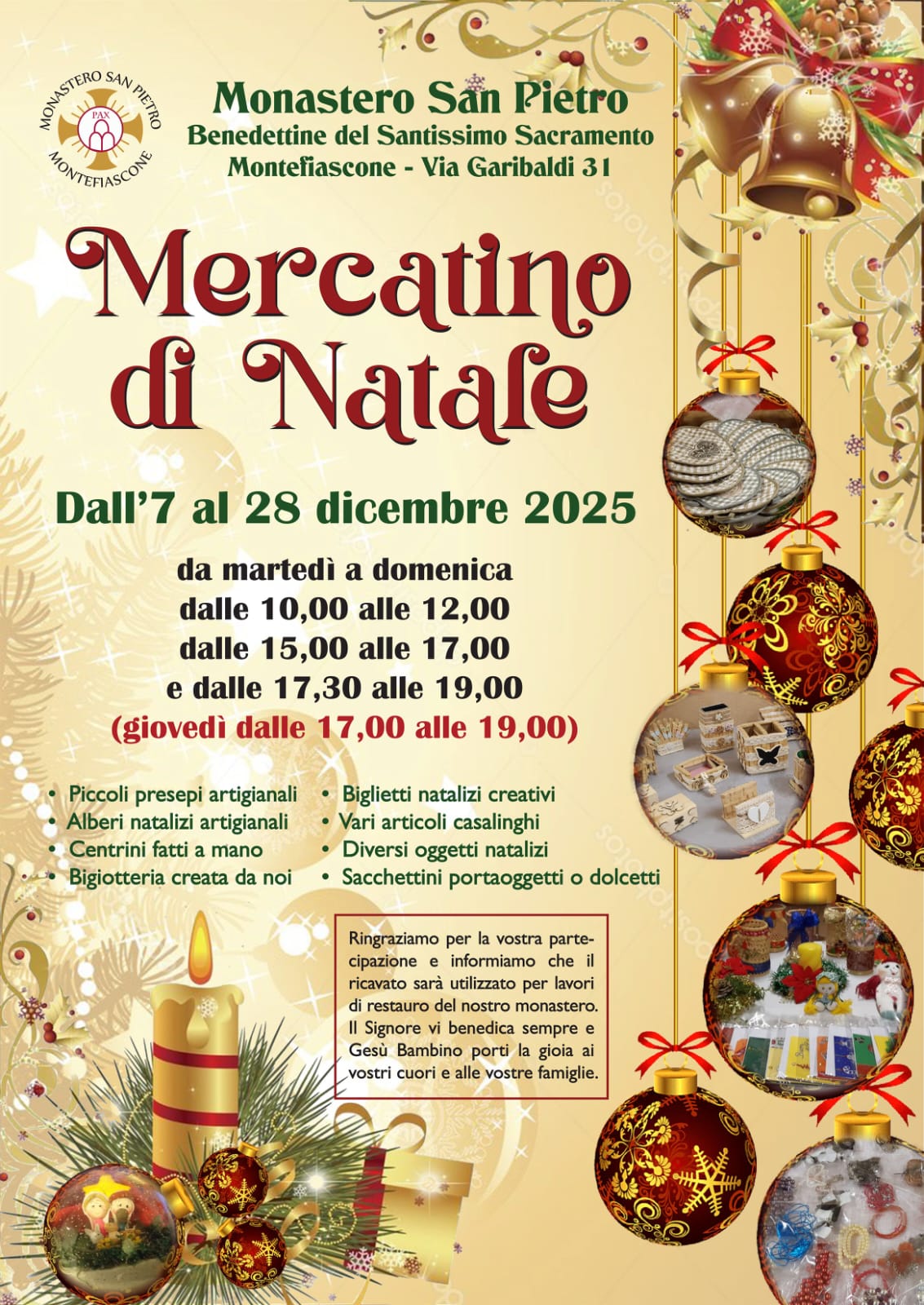 Dal 7 al 28 dicembre vieni a trovarci e visita il nostro Mercatino di Natale... potrai acquistare tanti articoli artigianali, il cui ricavato sarà destinato ai lavori di restauro del monastero!